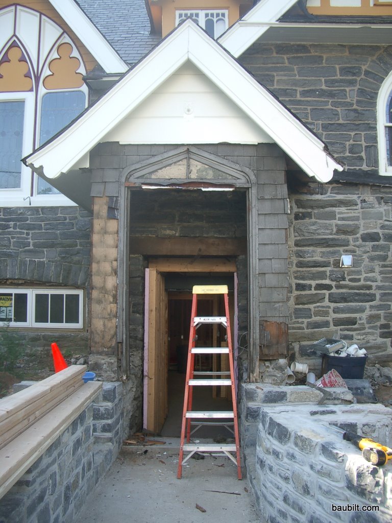One of the big moves architecturally for this renovation was to excavate the side yard so that the entrance to the lower level could be at the level of the sidewalk. Originally, we had to climb a half dozen steps, traverse a few feet of walkway, and then step down a half dozen steps into the “basement.” It was actually my idea, which the architect liked, to excavate next to the house and make it a straight shot into the lower level from the sidewalk. That worked well; getting in and out of the house is a breeze.