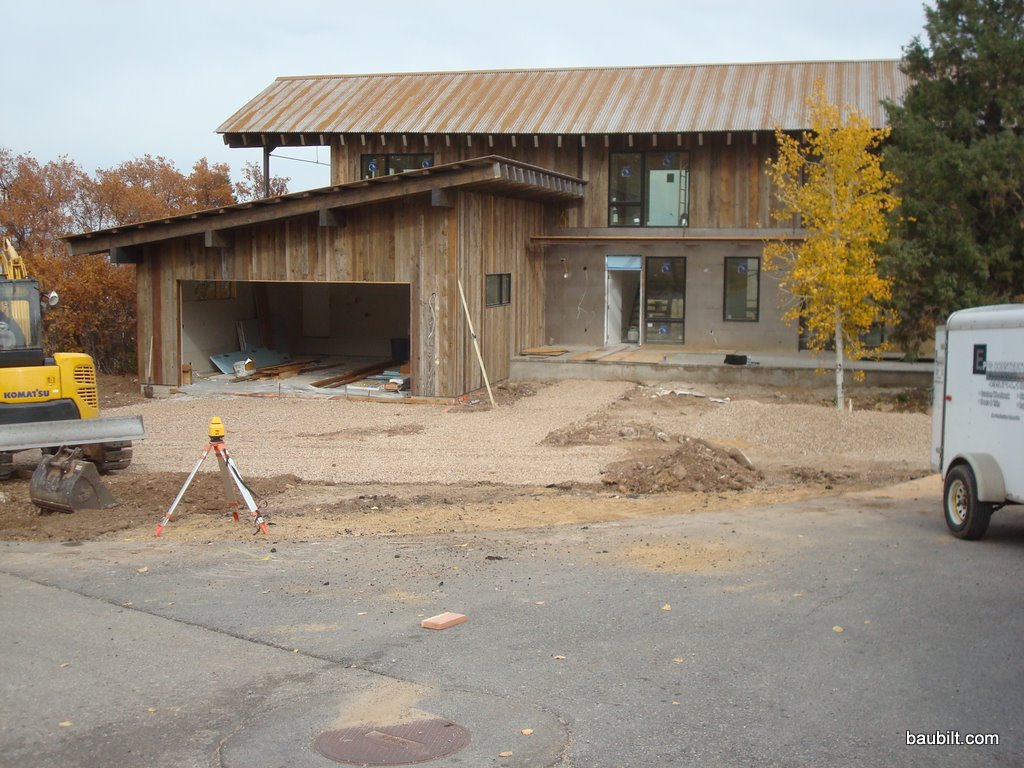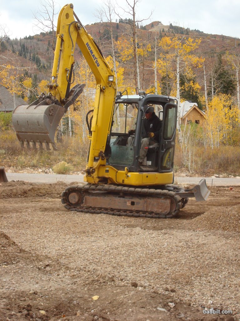 Tyler and Danny (Waters Excavating) came back to clean up the front yard and prep for the concrete driveway to be placed. They are can-do guys and pretty much just figured it out and got it done in one long day. They were the first ones on the site back in April and now one of the last on the site in October. Tyler has a bunch of big track hoes, but does a lot of his work with this small Komatsu hoe. It’s really nice and comes equipped with a rubber track so it doesn’t ruin the asphalt as they run around. I’d love to have one of these, but at $55,000 a pop, this is probably one tool I won’t own.