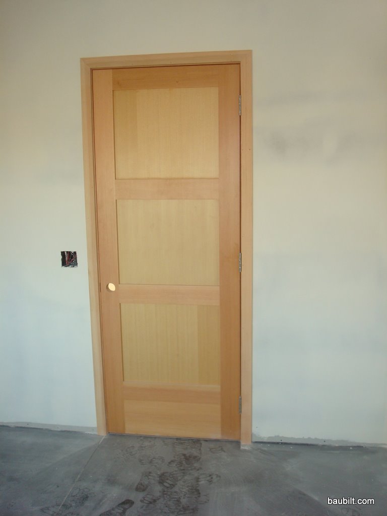 The doors arrived this week. They’re beautiful. I’m really happy with them. The only problem was the stain/finish guy who delivered them knocked them over in his truck and dinged a bunch of them. He’s fixing ’em (cheerfully, I might add). The doors came from Lemieux Doors in Canada. They were hung and finished by subcontractors to ProBuild, my materials supplier. They cost about $500 each, pre-hung and pre-finished (for 7 foot doors 1-1/2″ thick).  The main entry door was a lot more, about $2000 all in. Worth it.