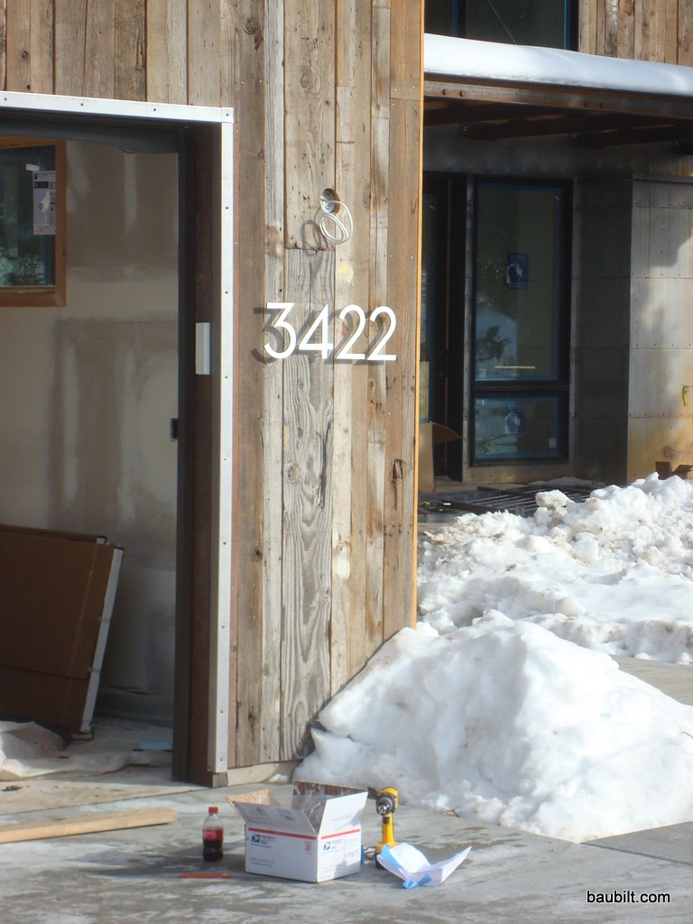 The cold-rolled steel roof has oxidized nicely over the fall and winter. It looks pretty good. Most of the steel siding is starting to turn as well, but it is pretty well protected from water, and with temperatures mostly below 50F, the oxidation rate is slow. Still, I’m pretty sure that by the end of the summer, most of the steel siding will have a decent patina on it.