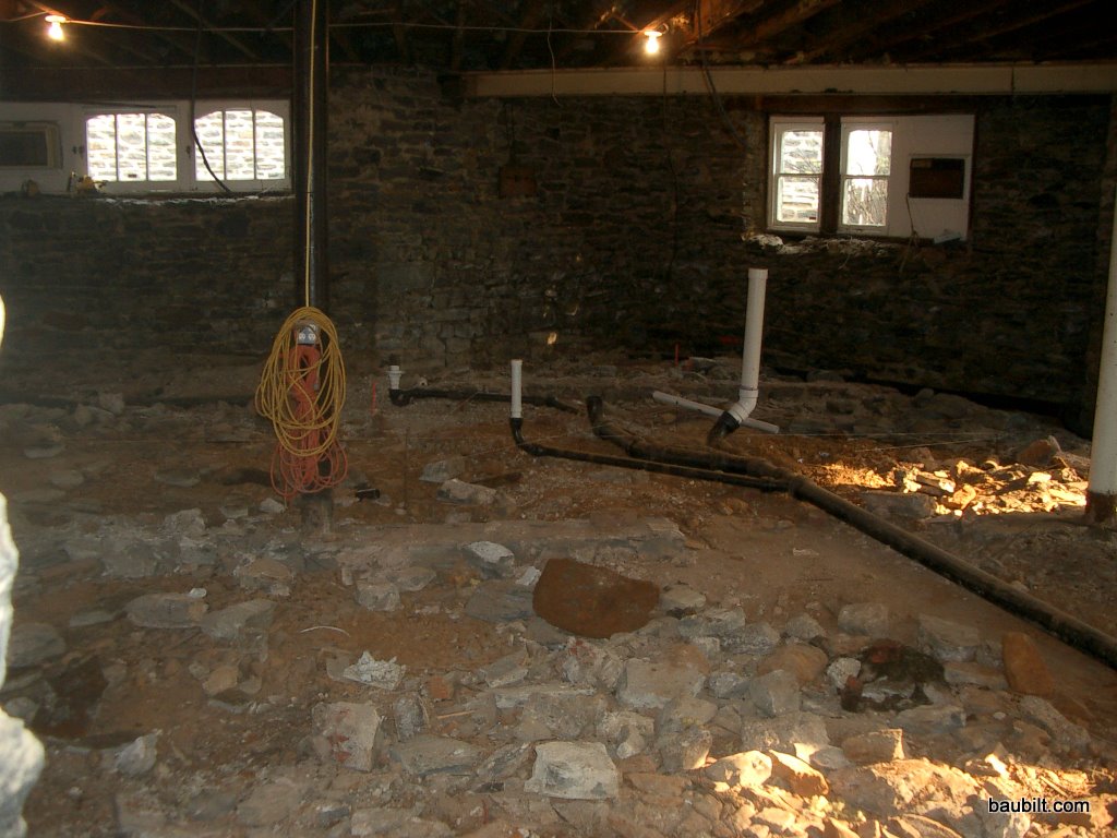 After the demo and getting the columns out of the way, we were ready to prep for the slab. Much of the prep involves the plumber, as he has to put in both the waste lines and the hydronic heating tubes before the slab is poured.