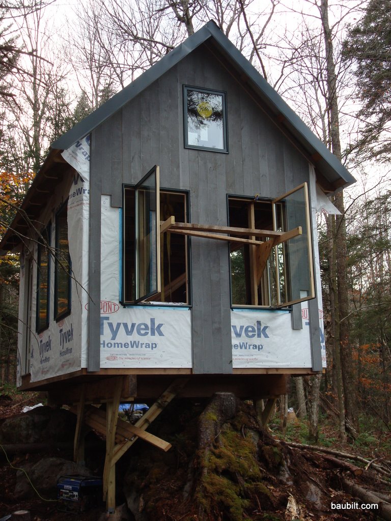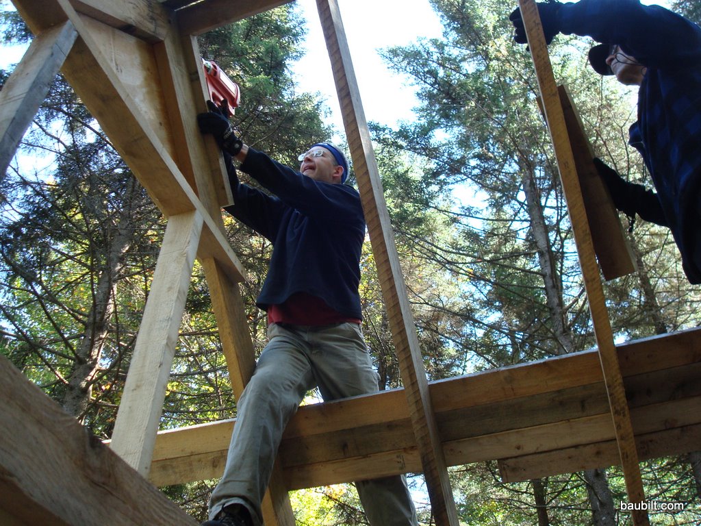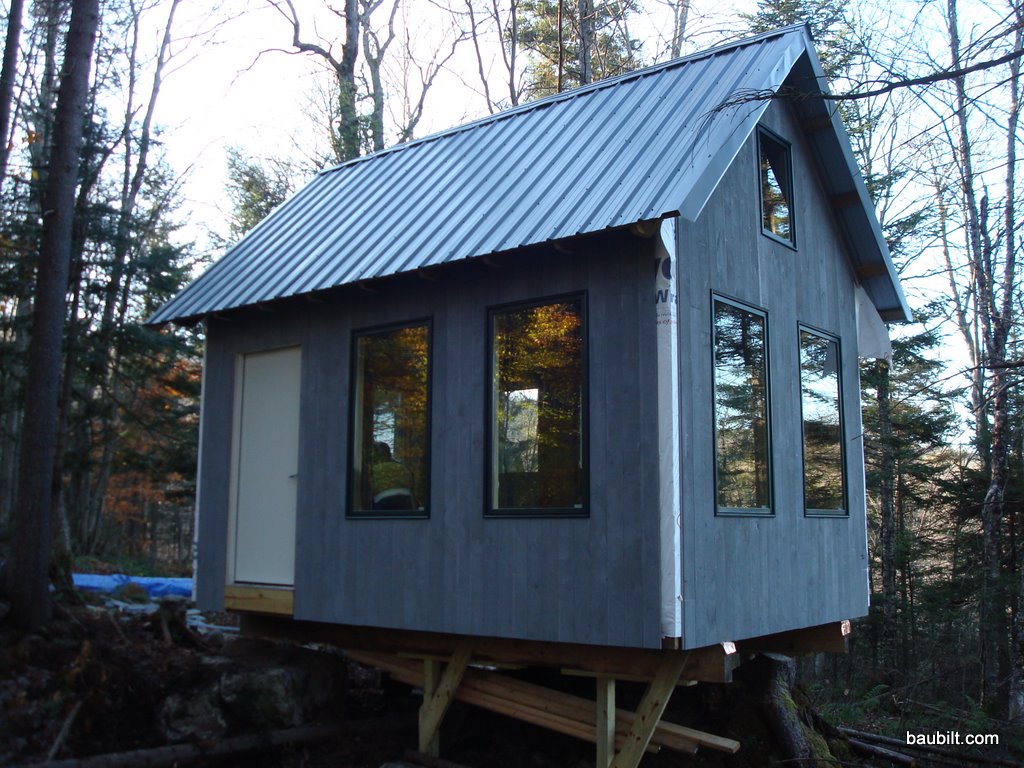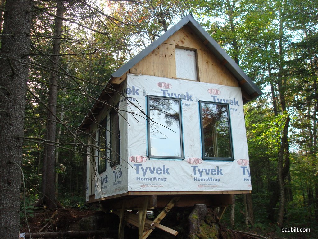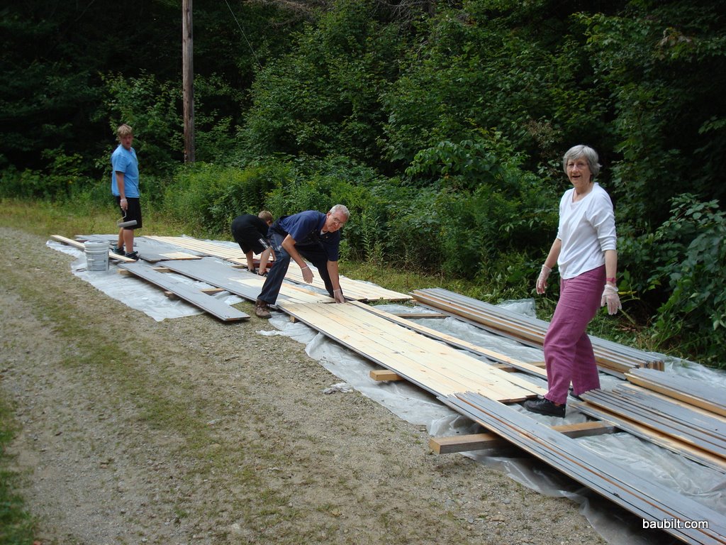 I chose Forbo Marmoleum for the mini cabin floor. I’ve used Marmoleum in two other projects– my church house kitchen (twice actually) and in a commercial project at work. I like the material quite a lot. Marmoleum is a trade name for a type of linoleum, which is a composite sheet material made from sawdust, linseed oil, dyes, and a jute backing. It is very forgiving, durable, and comes in a lot of funky colors. The sheet version comes in a 2 meter wide roll, which is really the only weakness of that form, requiring seams for most applications. The material is very heavy, so I knew I couldn’t haul a roll down the trail. Fortunately, the material comes in tiles, which are roughly 1 ft. x 3 ft. This version is called Marmoleum Click, because the tiles are supposed to click together.